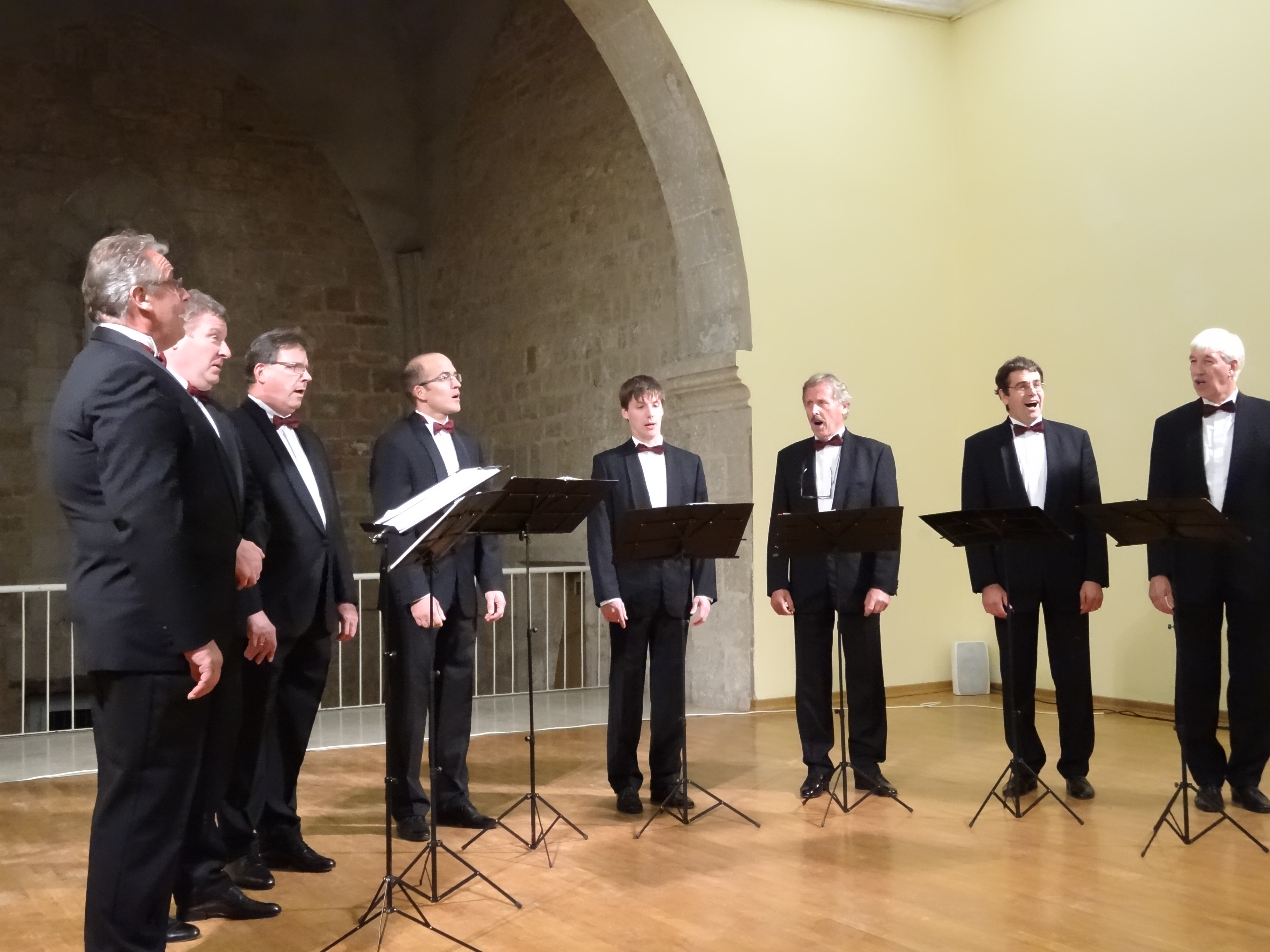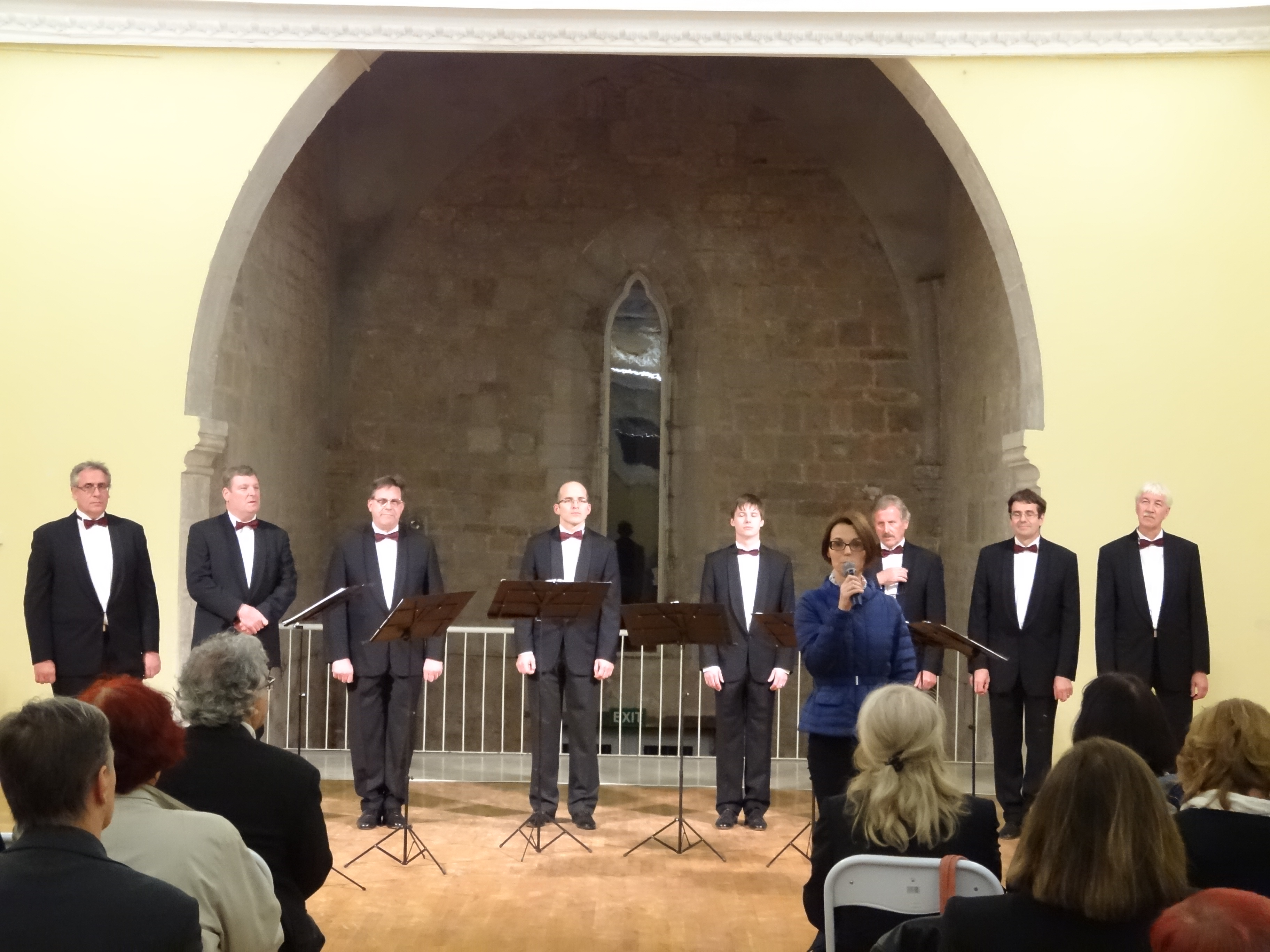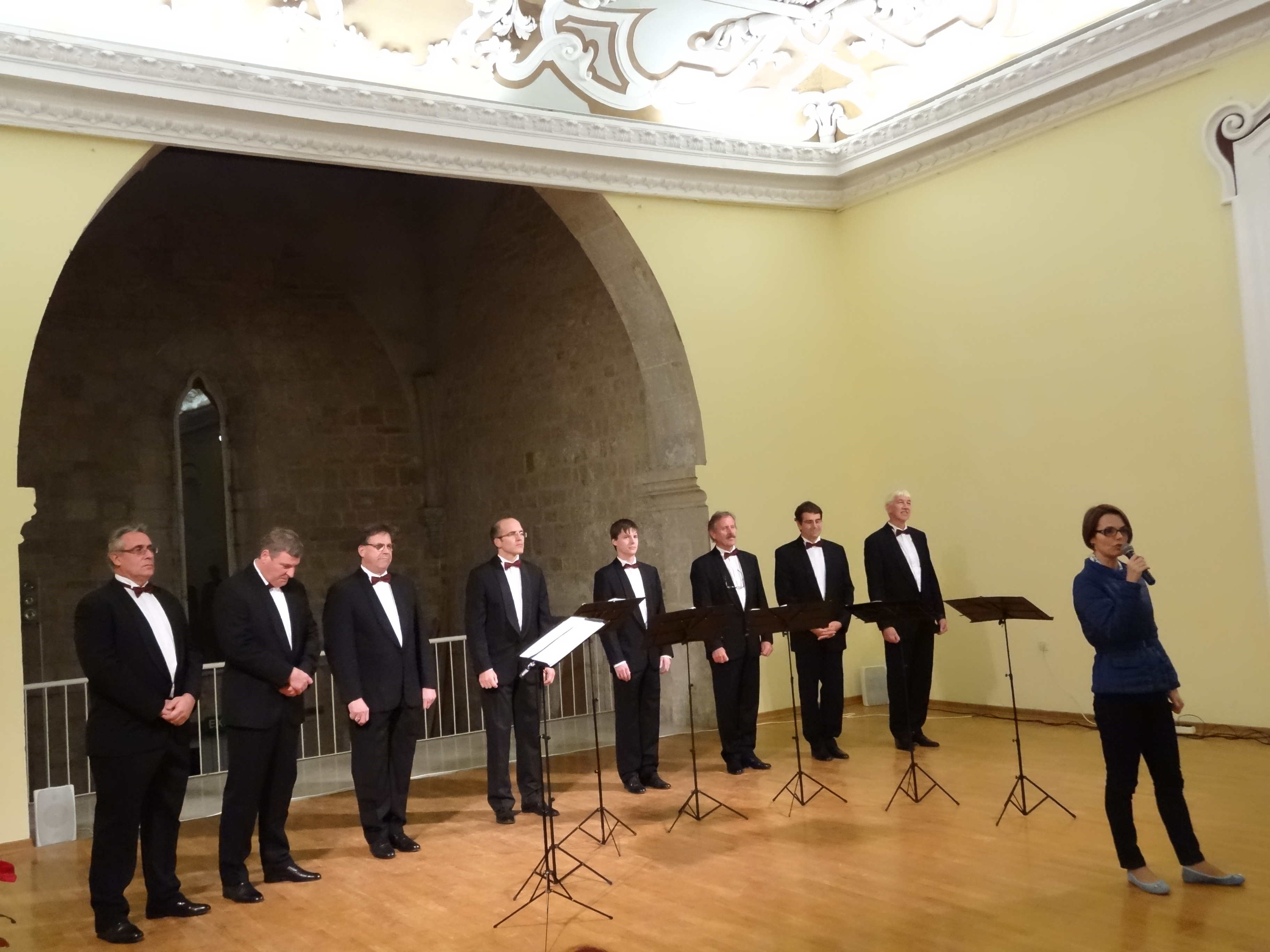 Riječ je o oktetu koji djeluje već tri desetljeća, a ubraja se među najbolje slovenske vokalne skupine, koji je gostovao i osvajao nagrade na festivalima od Azije, Europe, Sjeverne i Južne Amerike, sve do Australije. Dio svog bogatog repertoara izveli su i na koncertu održanom u Istarskoj sabornici. Sve okupljene pozdravili su zamjenica gradonačelnika Grada Poreča-Parenzo Nadia Štifanić Dobrilović, te predsjednica Oljke Miriam Pran, dok je u pauzi između izvedbi o manifestaciji govorila Jasmina Ilić, tajnica SKUD-a Istra iz Pule.