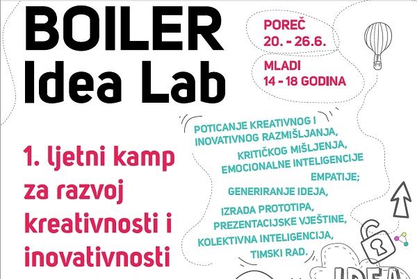 BOILER Idea Lab je interaktivno i iskustveni sedmodnevni ljetni kamp, namijenjen mladima od 14 do 18 godina, koji će se kroz projektni pristup upoznati s alatima i vještinama potrebnim za razvijanje kreativnog i inovativnog potencijala. Kamp će se održavati od 20. do 26. lipnja 2016., svakodnevno od 9 do 15 sati u Centru za mlade Poreč, uz dodatne teretne aktivnosti.